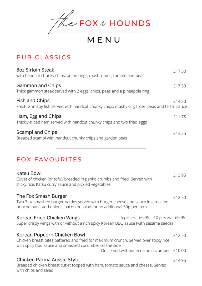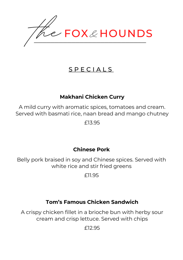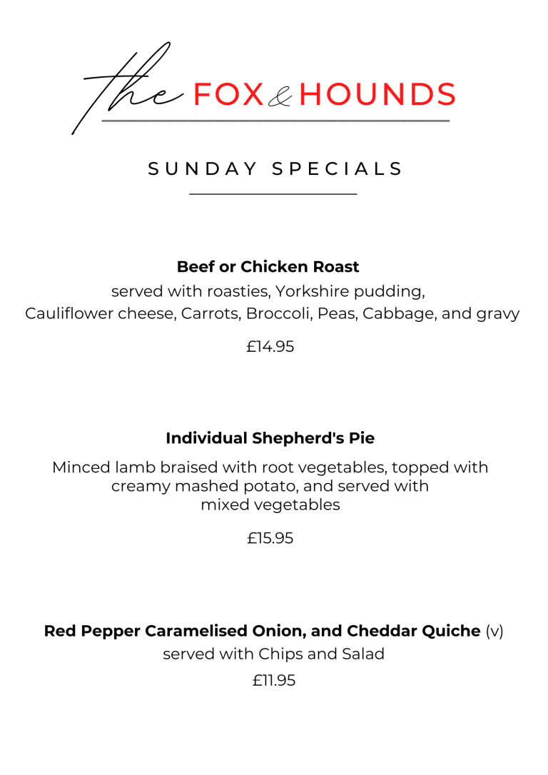 and all the classic trimmings, or choose from one of our Sunday Specials - an unmissable treat to finish your weekend.